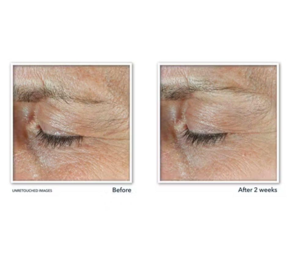 Presentamos un dúo de ojos 2 en 1 desarrollado con dermatólogos y cirujanos plásticos para ayudar a tratar las áreas superior e inferior de los ojos. El gel para la parte superior de los ojos levanta y reafirma espectacularmente el aspecto de los párpados, mientras que la crema para los ojos de la parte inferior suaviza, des hincha y reduce visiblemente las ojeras. Juntas, estas fórmulas con combinaciones únicas de retinol y péptidos brindan resultados clínicamente probados para todas las áreas del ojo. En solo 1 semana, el 96 % vio reducida la apariencia de líneas e hinchazón y en 2 semanas, el 90 % experimentó párpados visiblemente levantados y ojeras reducidas. Aplique una fina capa de gel rosa en el párpado y en el área del hueso de la ceja; Aplica la crema blanca debajo del área de los ojos. Utilice am y/o pm. Comience a aplicar este producto cada dos días y luego aumente gradualmente la frecuencia.